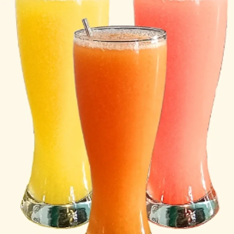 Licuado refrescante a elección: Mango, Ananá, Lucuma, Guanábana, Maracuyá, Papaya o Frutilla. Preparado con agua.